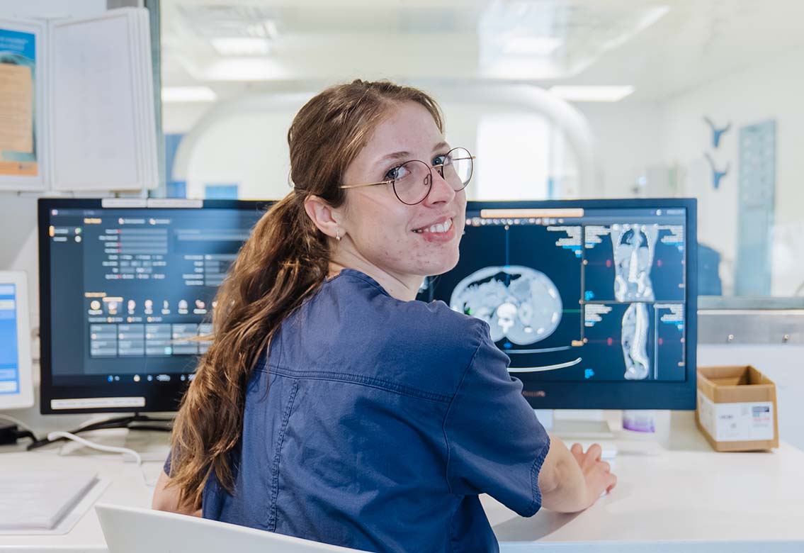 Danach geht es in die Radiologie. Dort begegnet sie selten Fällen „nach Lehrbuch“. Patienten mit schweren Verbrennungen oder Kinder mit Fehlstellungen brauchen individuelle Lösungen. „Wir müssen oft kreativ werden“, erzählt sie. „Manchmal geht es nur so, wie es eben geht.“